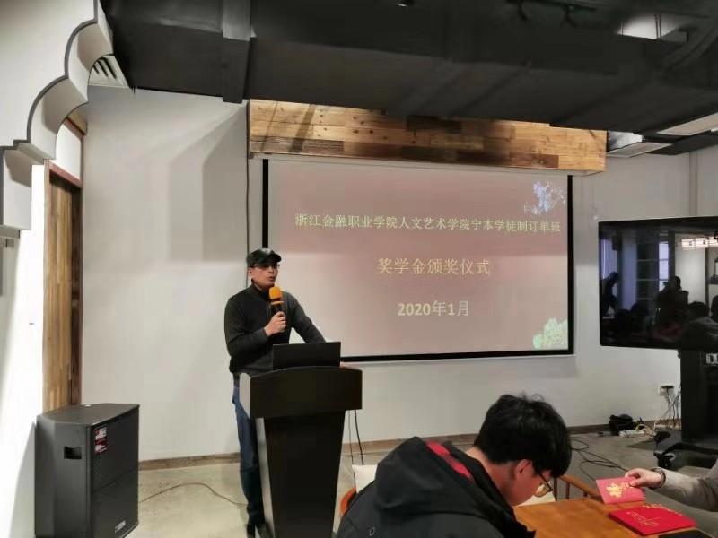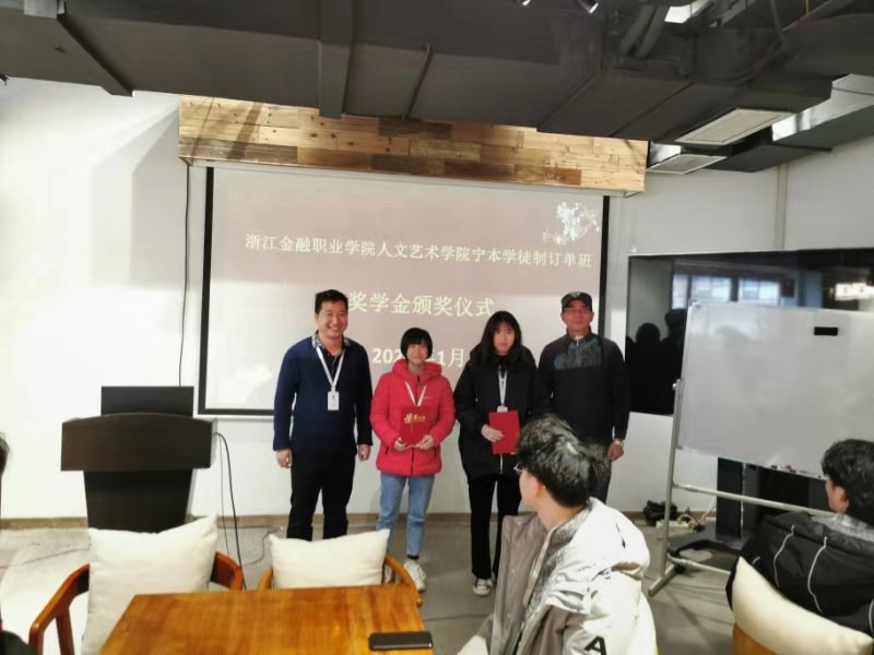 1月8日下午,7790cnm必发集团文秘专业的宁本现代学徒班奖学金颁奖仪式在浙江宁本金融服务外包有限公司举行。7790cnm必发集团经理翁惠根教授、副经理赵志强教授应邀参加,宁本金服公司李阳总经理及相关工作人员作为企业方代表接待并主办了本次活动。宁本学徒班班主任凌云志老师主持了本次颁奖仪式。
