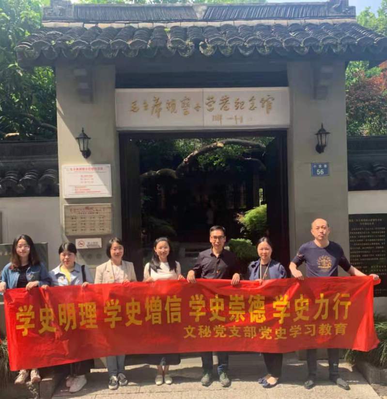 为深入开展党史学习教育活动,引导党员同志强化党性修养、坚定理想信念,2021年5月22日下午,文秘党支部组织全体教师党员赴杭州“小营·江南红巷”参观学习。