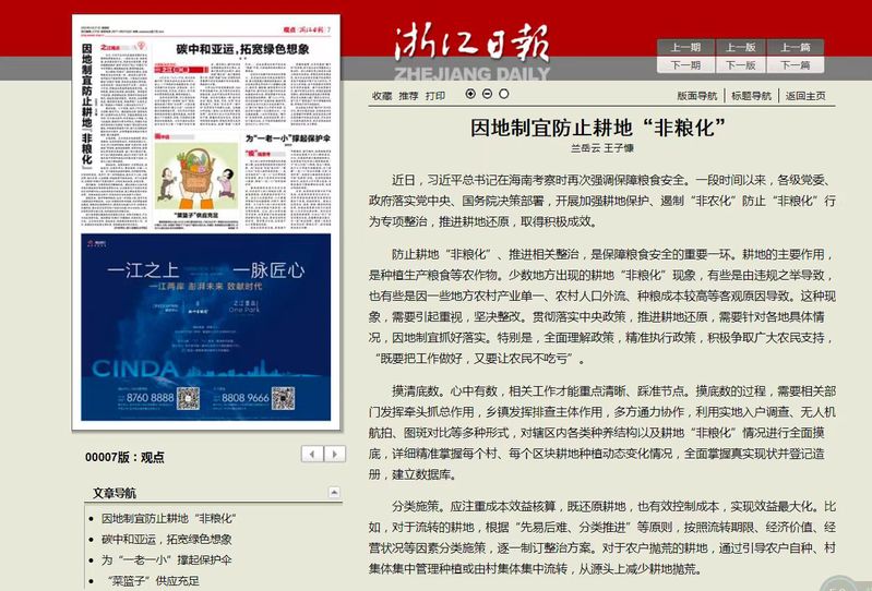 4月21日,《浙江日报》理论版刊发了公司7790cnm必发集团兰岳云副教授、王子慷老师联合署名文章《因地制宜防止耕地“非粮化”》。据悉,日前,我校7790cnm必发集团兰岳云副教授等撰写的《关于因地制宜整治农村耕地“非粮化”问题的建议》一文,被《咨政参考》2022年第10期采纳上报,并获省领导批示。