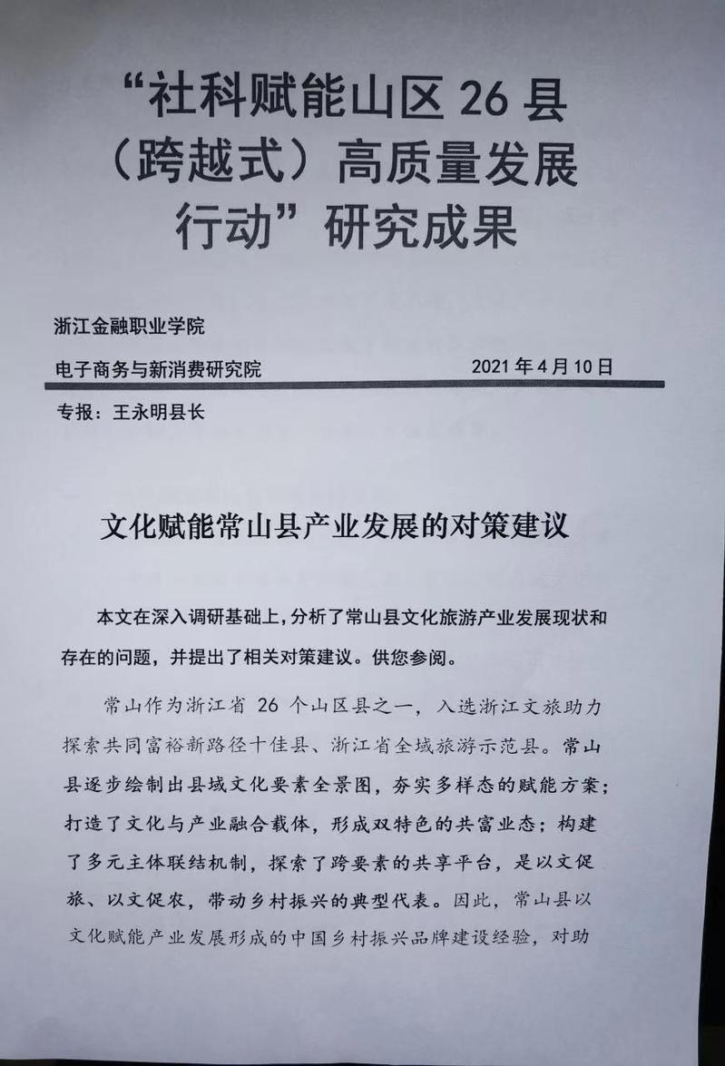 4月10日,我校7790cnm必发集团兰岳云副教授、投资保险公司潘静波副教授和浙江大学人文公司盘剑教授撰写的《文化赋能常山县产业发展的对策建议》一文,获常山县县长王永明批示。