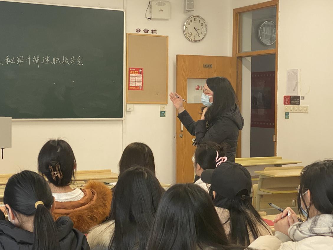 首先由郭敏飞老师讲述了班干部对班级班风学风建设的重要性,并说明了本次召开班干部述职报告会的意义和目的,表达了对班级建设的要求和提高班级凝聚力美好期盼。