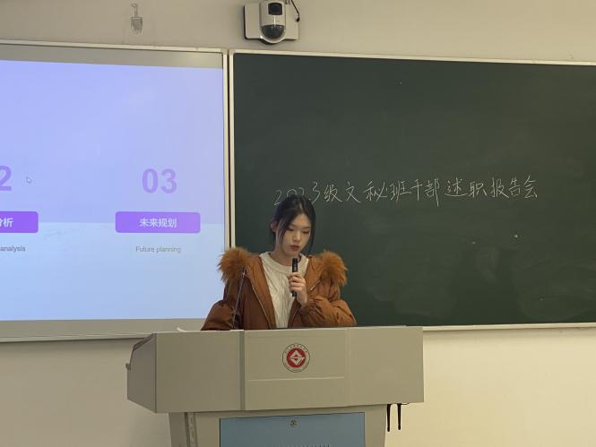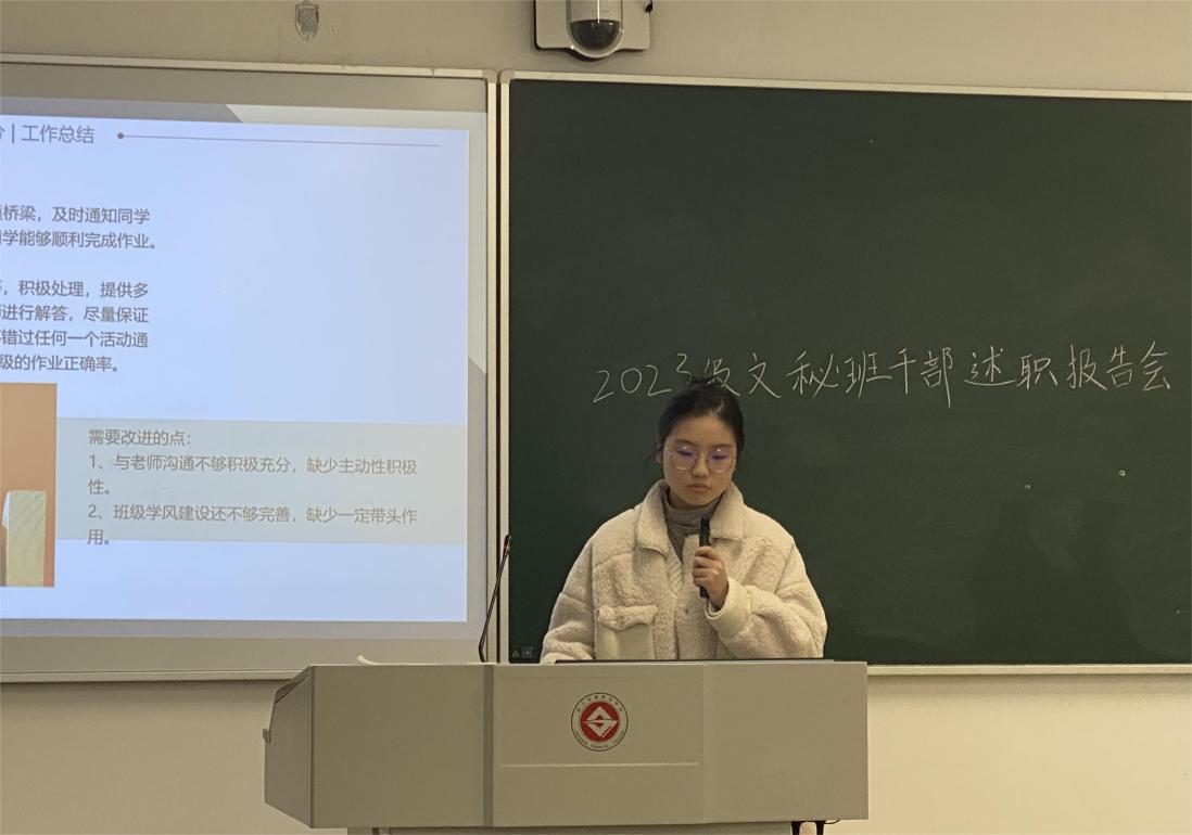 12月13日下午,文秘231和文秘232分别在8406和8410教室举行了2023级文秘班干部述职报告。参加人员为文秘231和文秘232的各班委及寝室长。