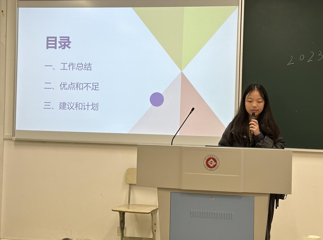 述职报告会上,寝室长和班委们穿插上台讲述这将近一个学期的工作报告,涉及到班级的活动安排、获得成就到寝室卫生情况、团建共创等内容。