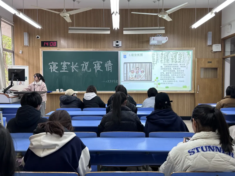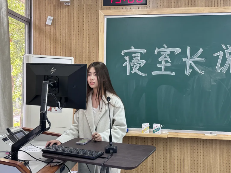 每位寝室长认真制作了PPT进行演讲,讲述关于寝室的基本情况、卫生情况等,凸显了各自寝室特色,展现每个寝室不同的风貌,了解不同寝室的文化和氛围。