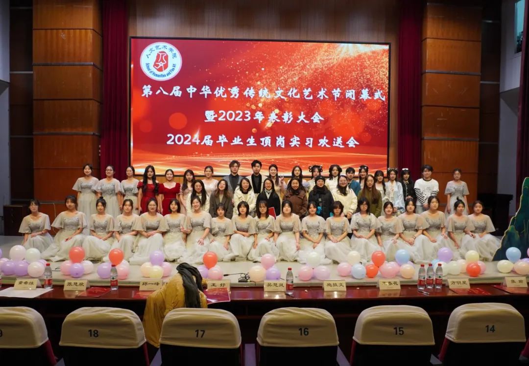 2023年12月20日晚6点,7790cnm必发集团于明理报告厅举办第八届中华优秀传统文化艺术节闭幕式暨2023年表彰大会、2024届毕业生岗位实习欢送会。
