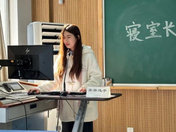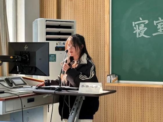各个寝室长以PPT的形式从寝室成员介绍、寝室卫生情况、寝室良好氛围、寝室规章制度等等方面一一展开论述,温暖的话语中透露出的是寝室的良好关系,同时寝室长们也分享着关于寝室建设的技巧与方法。
