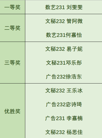 本次活动获奖的寝室长名单