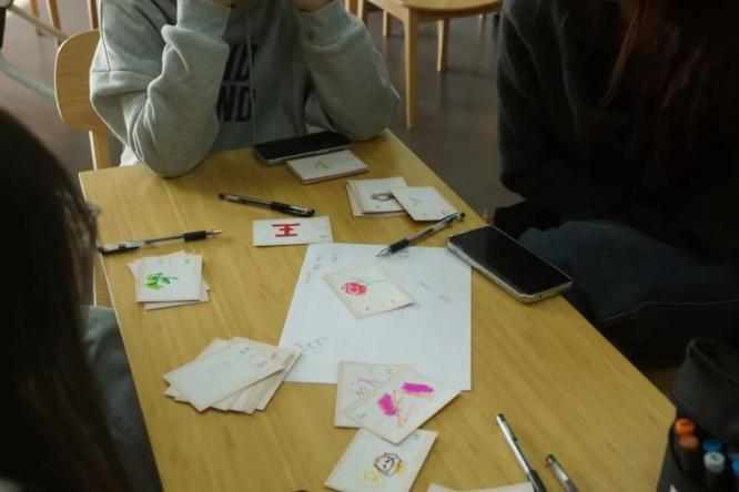 15张卡片对应15张图片,用一个词语描述对图片的感受,在之后的任效良老师引导同学们以手中的卡片回答问题,例如“哪张卡片最能代表进入大学三个月的生活?”“如果以一张卡片代表你朋友眼中的自己,你会选哪一张?”“你未来三年会如何度过?”等等。任效良老师与梁武老师也走进同学们与大家一起讨论,了解同学们的想法,为大家提出了自己的专业建议。