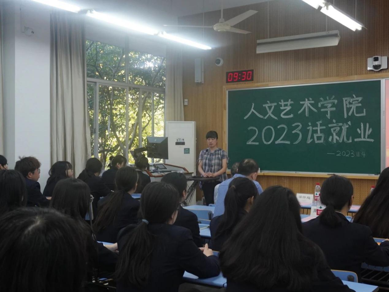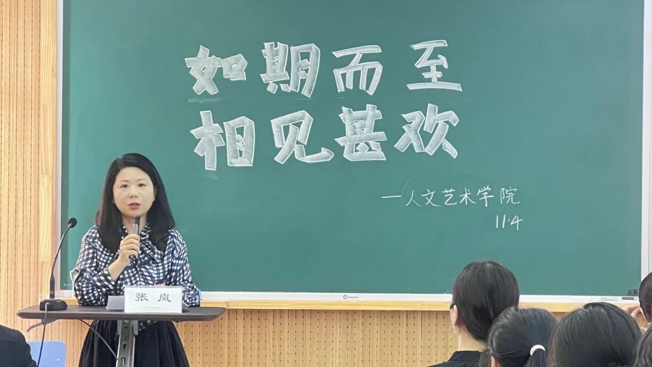 93届优秀员工杭州银行嘉兴分行副行长张岚在6205教室开展主题为“怀抱梦想,脚踏实地”的讲座,本次讲座由公司党总支书记施技文主持,数艺教研室部分教师及部分数艺、广告专业同学参加。