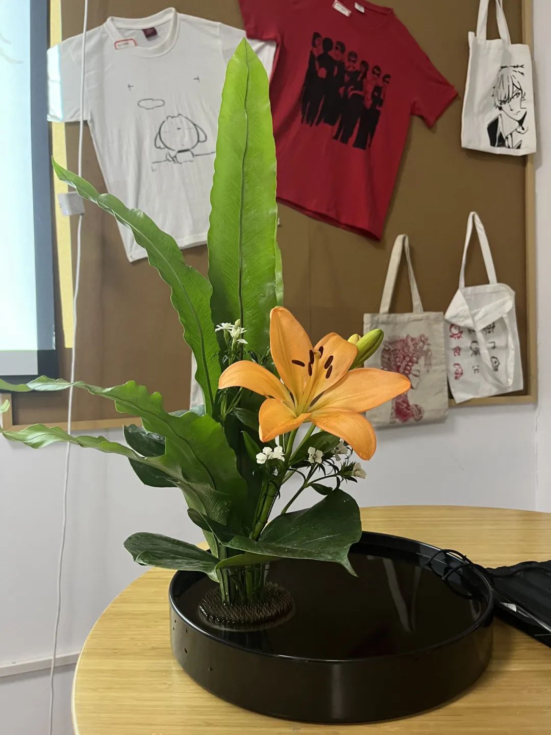 在很早之前就很想接触插花这门手艺了,这次的活动也算是满足了我的一个小心愿。参与插花活动让我感受到艺术与大自然的完美融合。在处理花卉时,我感受到一种与自然交流的愉悦,仿佛在沉浸于花海中。通过动手实践,不仅培养了我的审美感,也加深了对植物的热爱。插花不仅是一项技艺,更是一次心灵的沉淀与放飞。这次活动让我更深刻地理解了花艺的魅力,也为我的生活增添了一抹色彩。