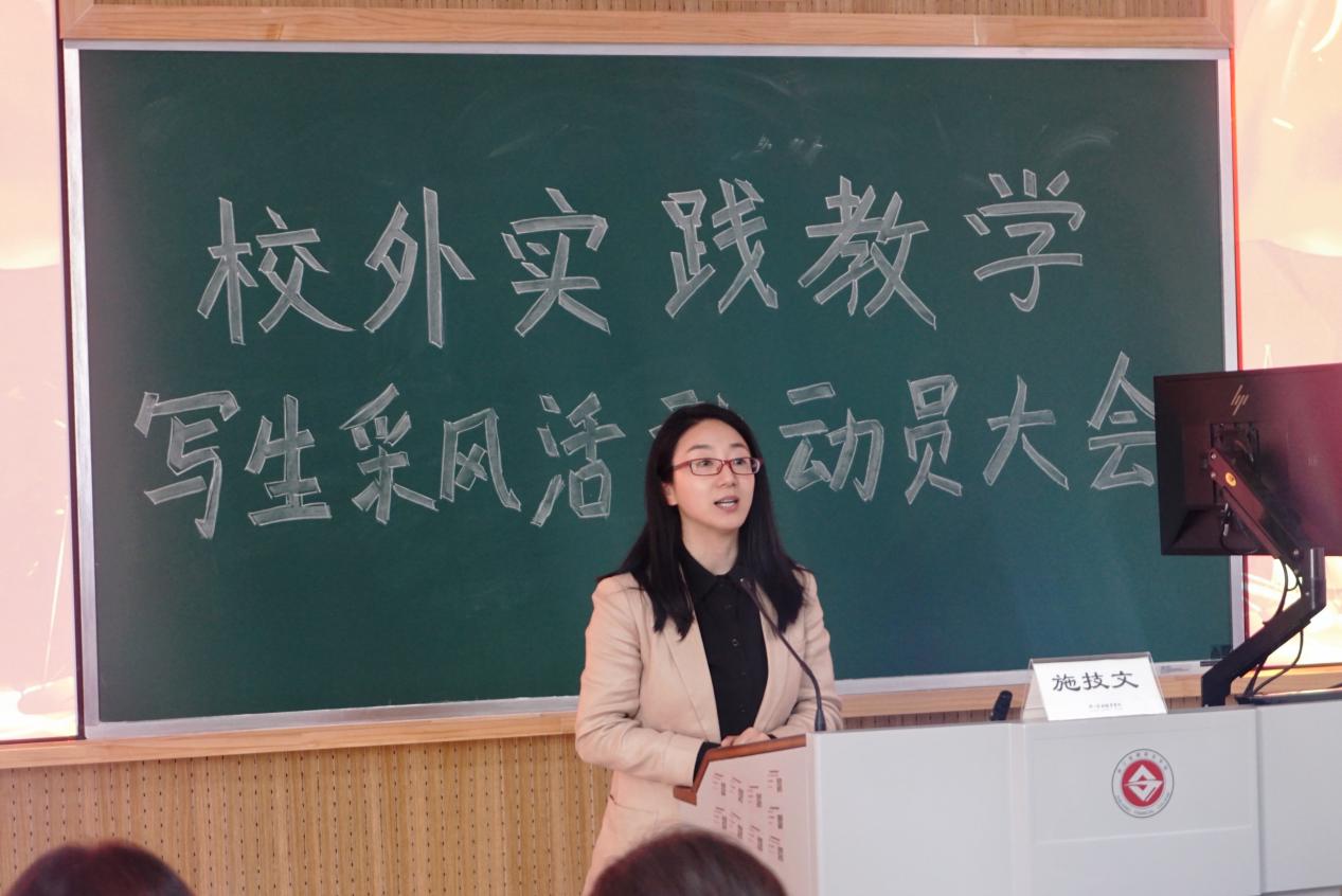 会上,党总支书记施技文强调:艺术设计是一门源于生活、高于生活的学科。设计的灵感来自于生活的点滴,创意源自于对世界的观察与思考。实践采风,正是员工走出课堂,深入生活,感受大自然与社会文化的绝佳机会。通过实践采风,可以亲身体验到不同地域的风土人情,领略到各种艺术形式的独特魅力,从而丰富设计语言,拓宽艺术视野。她指出本次组织艺术设计专业的同学们赴乡村开展实践,正是在国家大力倡导文化振兴以及我省坚持和深化新时代“千万工程”,打造乡村全面振兴浙江样板的背景下开展的。她希望同学们能够结合艺术支部院村联建项目,结合省文旅厅第三届“微改造 精提升”项目,以及非遗文化传承实践等项目,充分发挥自己的主观能动性,从文化中汲取灵感,将所学知识与实践相结合,用心去感受、去体验,创作出具有独特风格和深刻内涵的艺术作品,用艺术赋能乡村振兴。