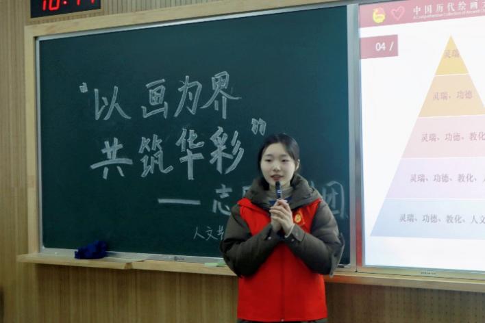 文秘222班的张家瑜同学作为此次活动的主讲人,以生动的讲解方式,带领大家走进中国绘画的瑰丽世界。