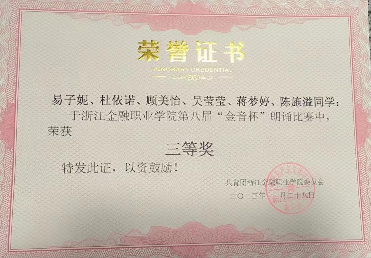 校金音杯朗诵比赛三等奖、院思政微课比赛一等奖